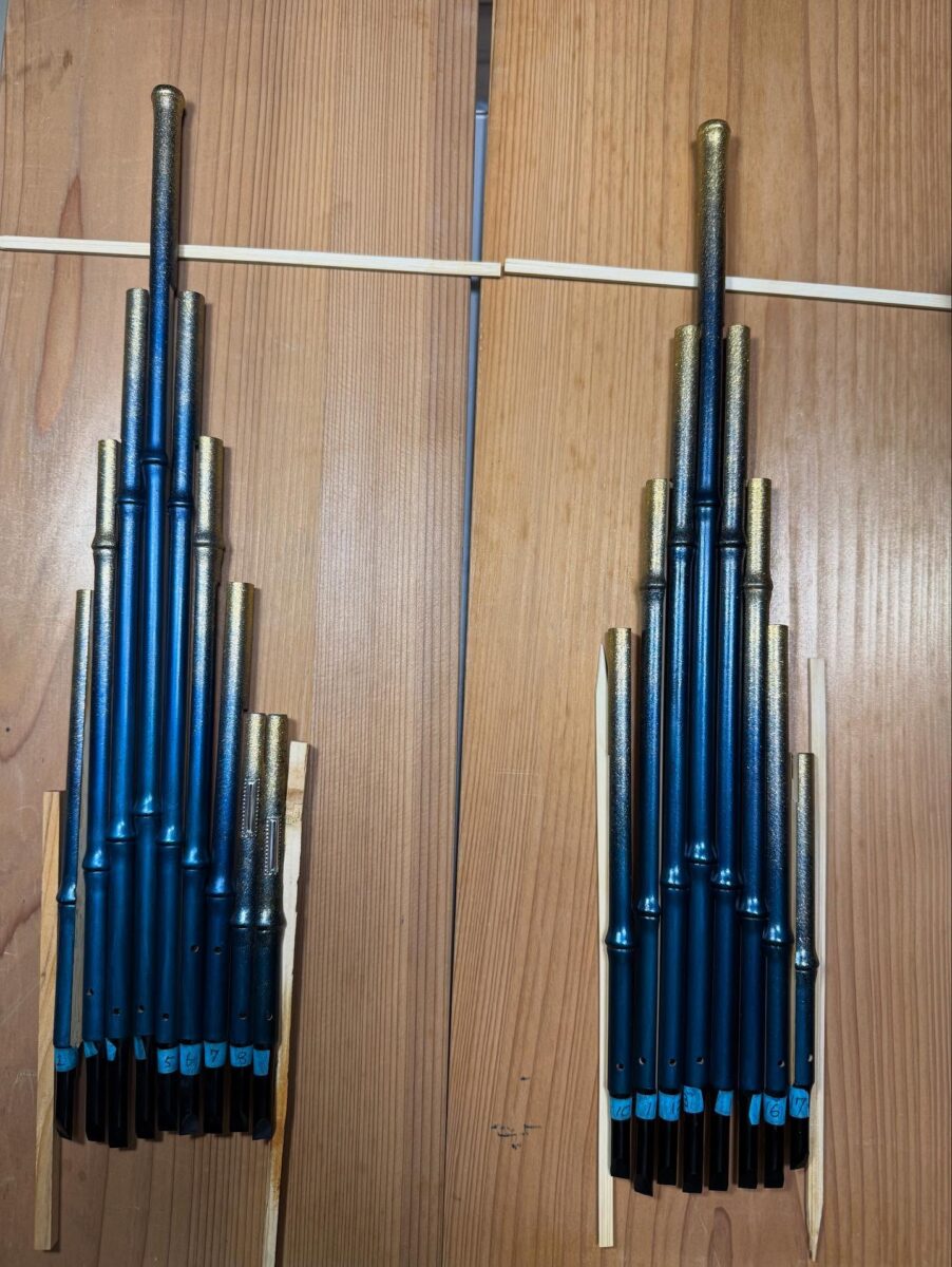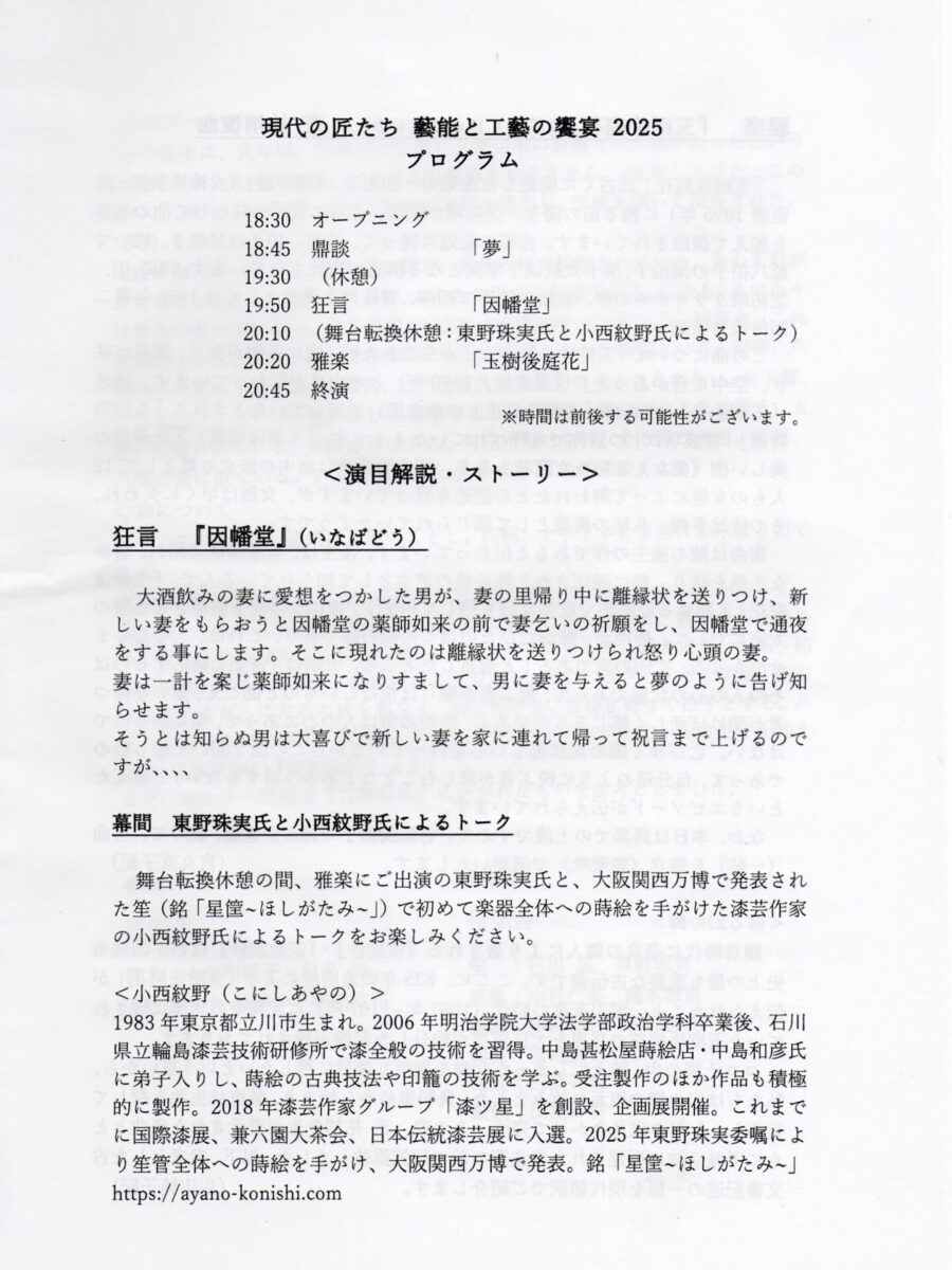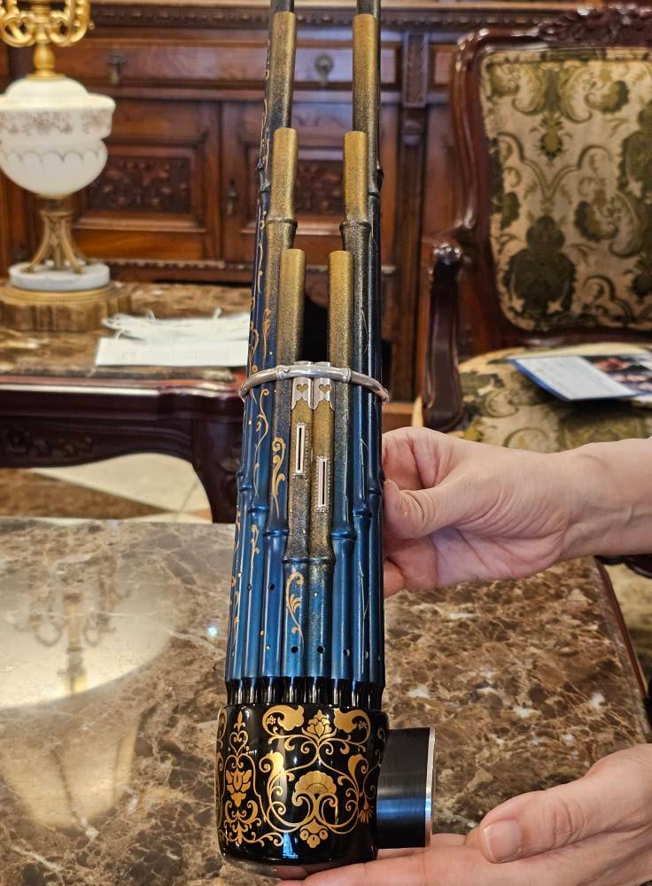 万博で初披露した蒼漆の笙、銘「星筐」を観世能楽堂の舞台でお披露目いたしました。